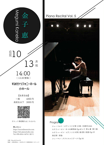 ◆主催 Nouvelle Sonorite 後援:一般社団法人 全日本ピアノ指導者協会(ピティナ)・すみやグッディ株式会社(静岡)